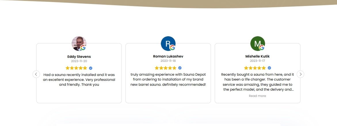 - Brand Credibility: Glowing customer reviews, like those from Mishelle Kutik and Patrice Gravel, praised Sauna Depot’s quality, affordability (2/3 the price of competitors), and professional service, reinforcing trust.